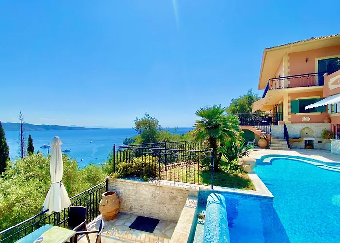 Вилла расположилась на расстоянии 1 км от центра Калами и около 6 км от замка Кассиопи. А из окон открывается вид на море.